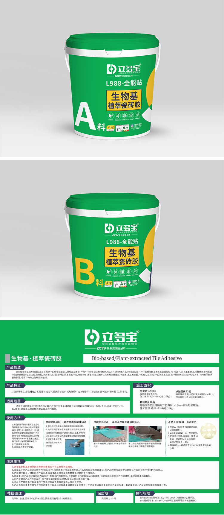 生物基·植萃瓷磚膠-L988全能貼-A料和B料16kg