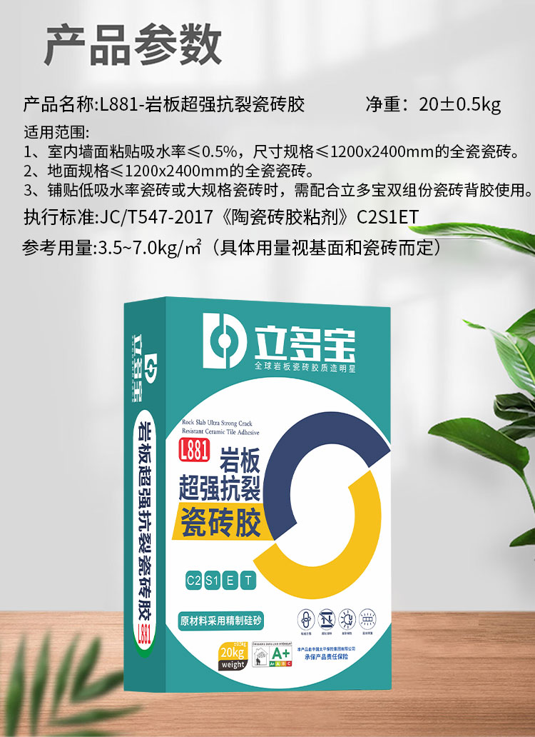L881-巖板超強抗裂瓷磚膠-20kg